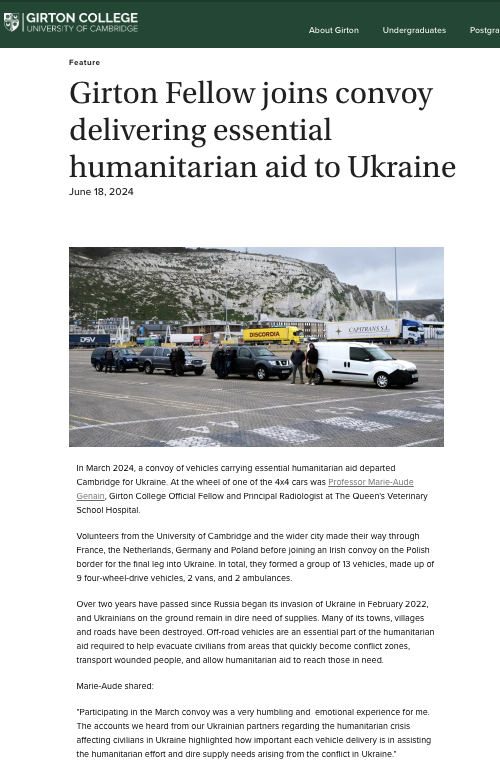 Press Feature June 18, 2024 Louis Mitchell Girton College: Girton Fellow Joins Convoy Delivering Essential Humanitarian Aid to Ukraine, Cambridge University, 18 June 2024 https://www.girton.cam.ac.uk/news/girton-fellow-joins-convoy-delivering-essential-humanitarian-aid-ukraine